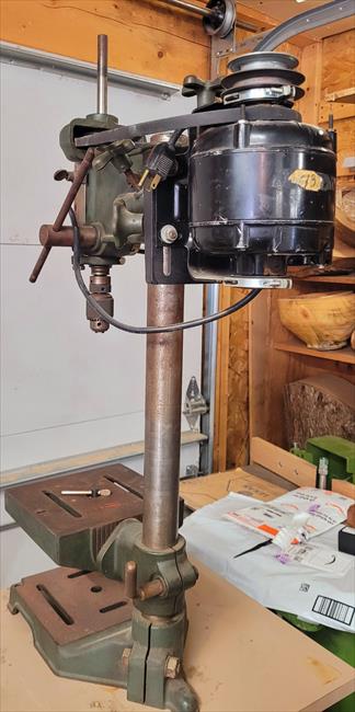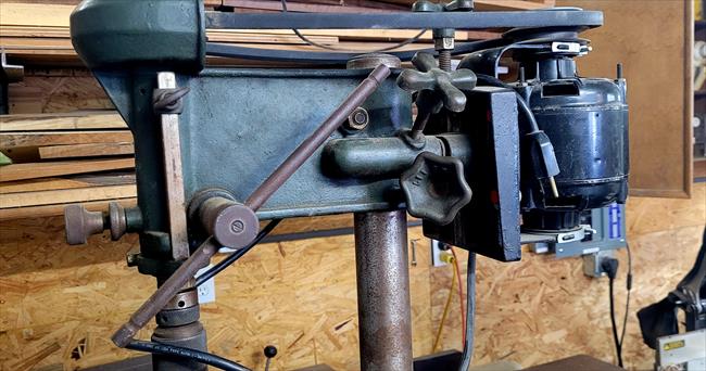 Most similar to the photo of the D705 in the 1935 catalog. One knob is different from the illustration. Only one step on the pulleys. Purchased from a local man who inherited it from his father. Motor not original.