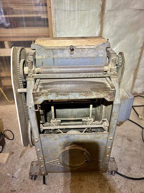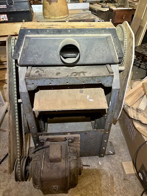 I’ve had this Planer over 20 years. The switch and drive belt have been replaced. The electric motor is old, maybe original. I bought in rusty condition from a small sawmill operator who acquired it from a retired wooden boat builder in Port Alberni, Vancouver Island BC in the mid 1990’s. The sides are 1/4” plate steel, no sheet metal at all.