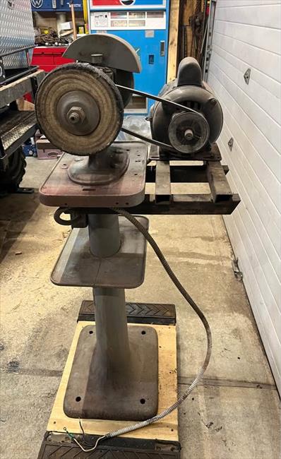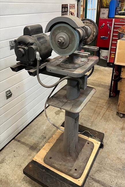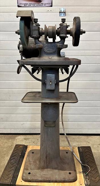 This is not my grinder. I believe that this is a model B based on comparison to other grinders in the photo file. Note in photo #4, that the stand or base that this is on does not appear to be an oem (?) part. The tray that the grinder sits on top of is an oem part, note the diamond shaped logo inside of a circle on the tray, in front of a hold down/attachment bolt.