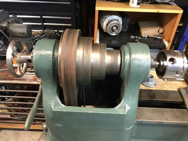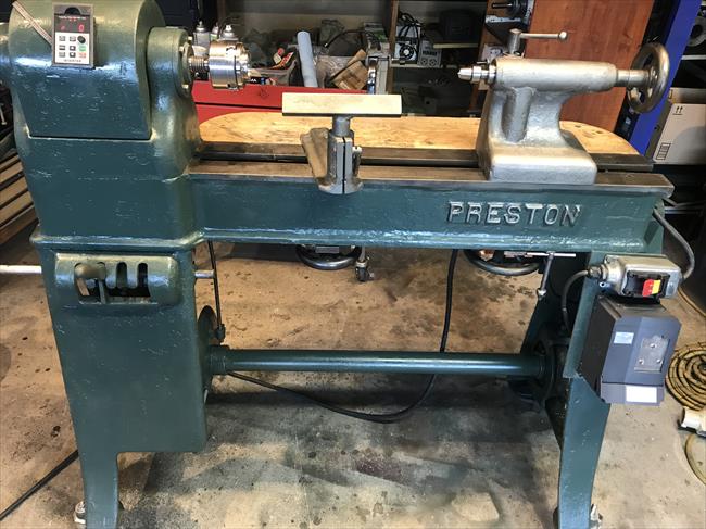 I acquired this machine and have since sold it. It's a massive cast iron machine that was once in a line shaft shop. It was a lot of work to clean this one up. It came with the what appeared to be the original leather belt. Sadly I managed to break it and had to replace it. I replaced the single phase motor that had been adapted to run the axle that ran from the tail end of the lathe to the drive the headstock with a 3 phase motor with VFD. The tailstock is massive!