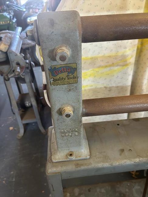 I picked up a Delta Model 700 Scroll Saw for $50 because I wanted to motor and possible the welded stand, but of course the saw is in much better shape than I thought and appears to be original and complete. The original paint and decals look good under the grime! Not sure yet what I will do with it. Looking through the old Delta catalogs, I see that the earlier Model 700 saws had a single pulley on the saw and motor but the 1937 catalog shows a cone pulley on the motor and saw and advertises "multiple speeds". Looks like mine is one of these later 700 saws. Saw came with several vintage packages of blades and what looks like the original Delta hex tool for tightening the blade chucks.
