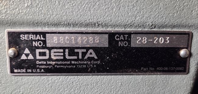 Purchased in 1987. no. 28-283 Band Saw Package includes no. 28-203 Band Saw with 52-963 Enclosed Stand, and no. 62-245 3/4 hp Delta motor. Purchased mostly for rough cutting wood blocks for bird carvings, but have found many other uses. It has suited my needs well. Have never used it for re-sawing.