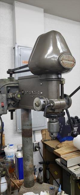 I picked this up in March 2026. It was in decent condition but needed work before it could be used. The spindle bearings were bad and replaced with 6202 5/8 bearings. The pulley bore is shimmed to fit snugly on the spindle sleeve. It still has the leather washer on the quill at the depth stop. Next to be addressed, I need a stepped motor pulley. When I first ran this i was a little nervous of the work needed. Afterwards, this is the smoothest running drill press I've owned so far. Im very happy with it. It seems originally it was gray, then painted lime green, then gray again. I blasted it and painted it rustoleum hammered paint possibly gray,,I can't tell. It looks brown in low light and dark gray in bright light. Next I will sand down the column and then the table and base will get refinished.