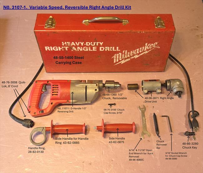 3107-1 Milwaukee Variable Speed Right Angle Drill Kit |