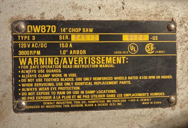 DW870, DeWALT Heavy Duty Chop Saw, Type 3 |